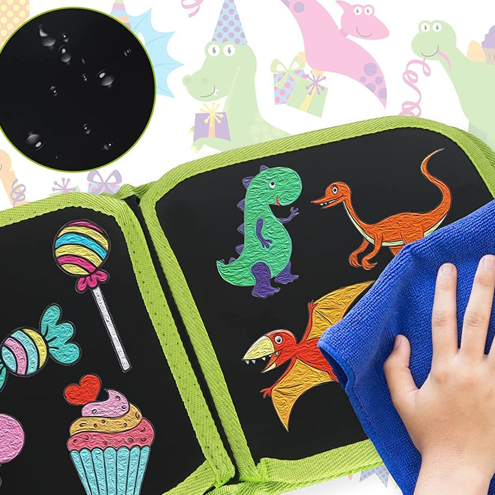 - Knygutė pagaminta iš aukštos kokybės, daugkartinio naudojimo popieriaus, kuris leidžia piešti ir rašyti įvairiomis priemonėmis, įskaitant pieštukus, flomasterius ir rašiklius. Ji pasižymi unikaliu dizainu, leidžiančiu lengvai nuvalyti paviršių ir pradėti piešti iš naujo.